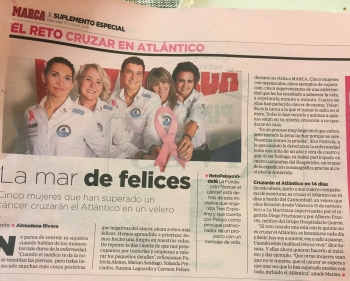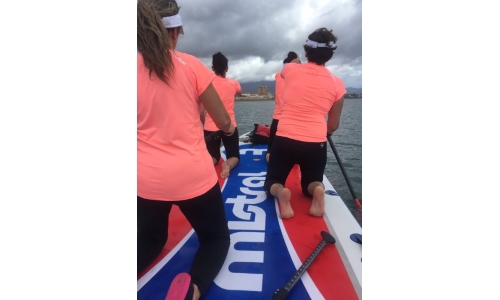 Un año después, llegó la propuesta del RETO MISTRAL “SURFEANDO LA VIDA”. Mis compañeras y yo recorrimos 10 kilómetros en una sola tabla de padel surf desde el puerto deportivo de Estepona al puerto deportivo de Manilva. Mis compañeras, al haber tenido cáncer de mama, tenían problemas en uno de los brazos para remar, pero la unión hace la fuerza y lo conseguimos.